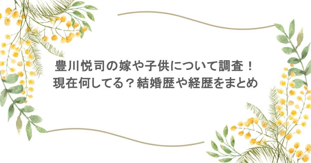 俳優として第一線で活躍する豊川悦司さん。クールな風貌と演技力で多くのファンを魅了していますが、私生活については謎に包まれた部分も少なくありません。今回は豊川悦司さんの嫁や子供、そして現在の生活について詳しく調査しました。結婚歴や俳優とし... -